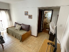 Dormitorio cama 2 plazas y marinera en living comedor.